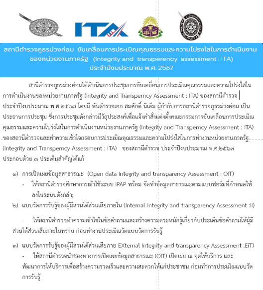 การประชาสัมพันธ์ขอมูลผลการดำเนินงานของหน่วยเรื่องการประเมิน ITA ปีงบประมาณ 2567