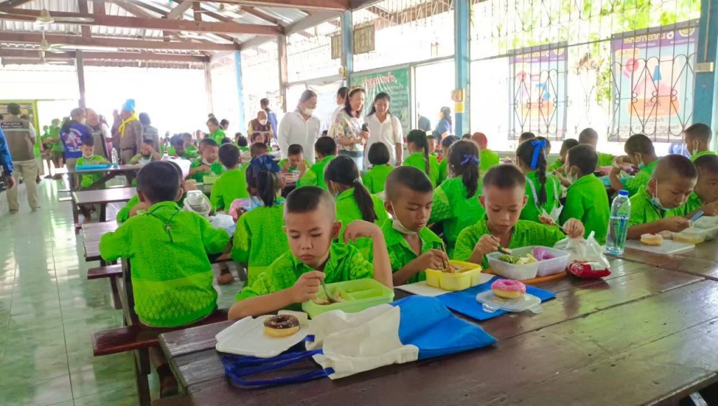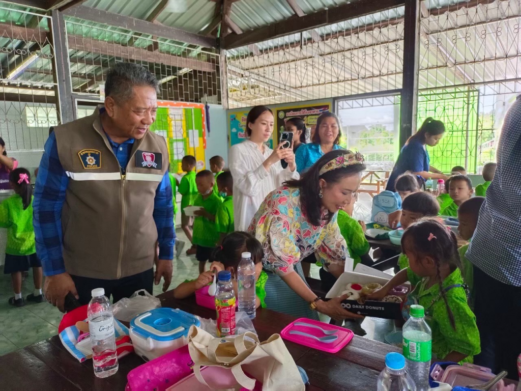สภ.ม่วงค่อม วันที่ 12 กุมภาพันธ์ 2567 เวลา 11.30 น. นำโดยพ.ต.อ.สมศักดิ์ นิเต็ม ผกก.สภ.ม่วงค่อม พร้อมกำลังข้าราชการตำรวจสภ.ม่วงค่อม ได้ร่วมกับ นายสุธรรม มังสาทอง ประธาน กต.ตร.สภ.ม่วงค่อม และคณะ กต.ตร.สภ.ม่วงค่อม ได้ร่วมกันนำอาหารกลางวันมอบให้เด็กนักเรียนโรงเรียนวัดสง่างอารมณ์ จำนวน 80 คน