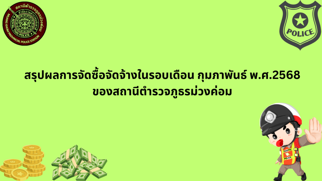 สรุปผลการจัดซื้อจัดจ้างจำแนกข้อมูลเป็น รายเดือน เดือน ก.พ.68 ในรูปแบบไฟล์ PDF คลิ๊กที่นี่