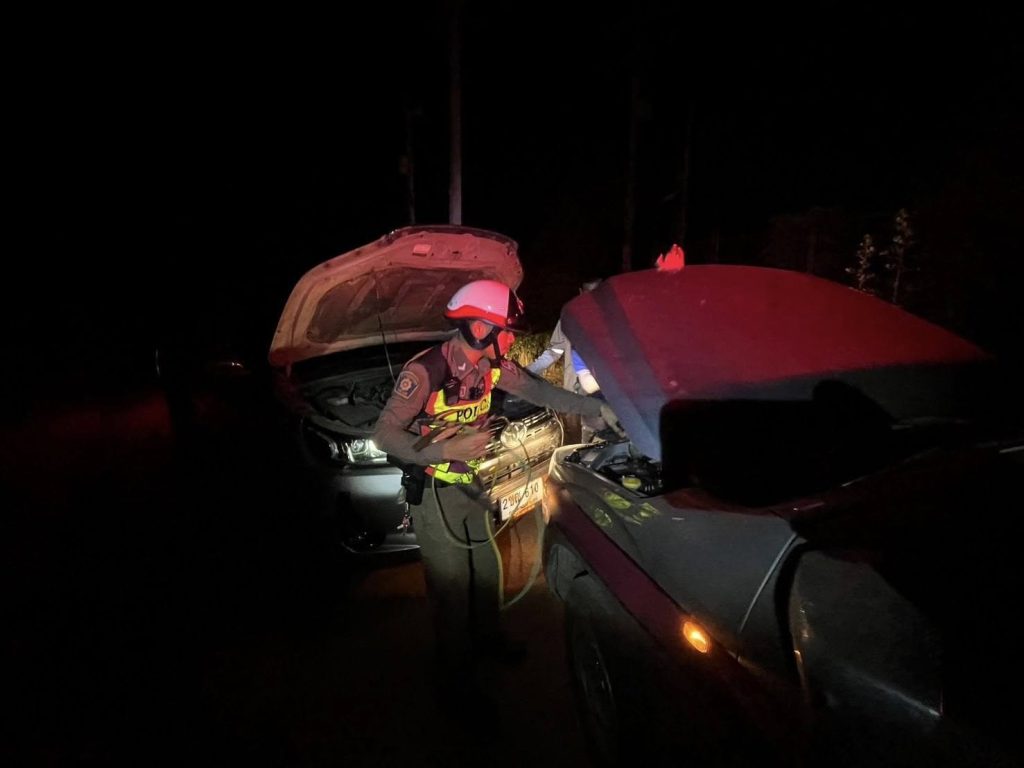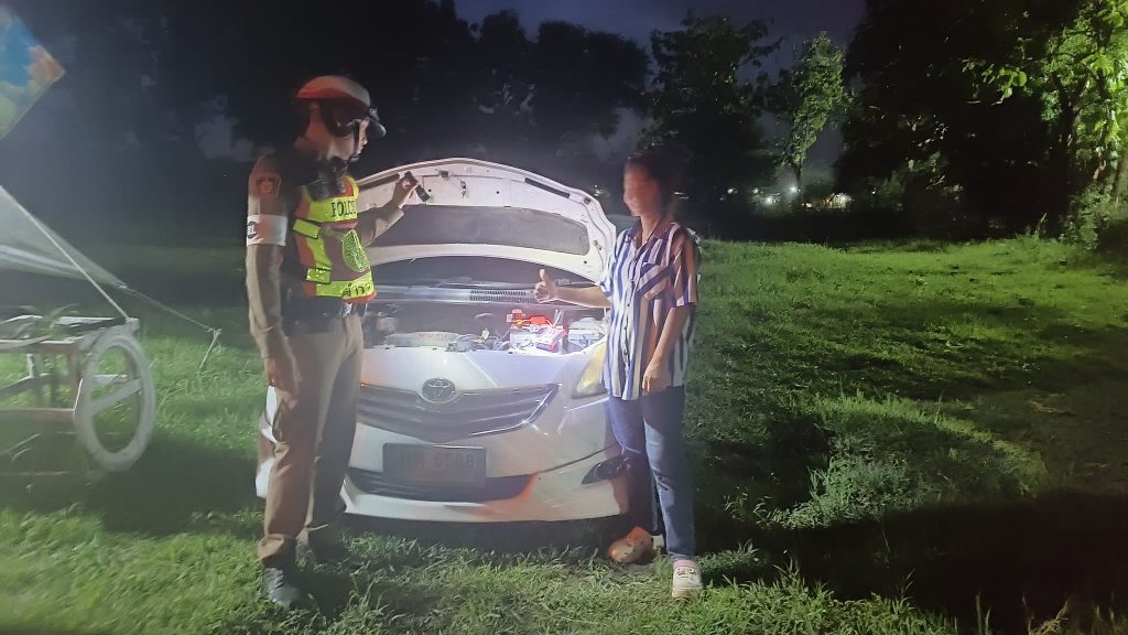 สภ.ม่วงค่อม ภ.จว.ลพบุรี วันที่ 27 ต.ค. 2567 เวลาประมาณ 00.20 น. ส.ต.ต.กิตติศักดิ์ รุดบุญ ม่วงค่อม 613 พร้อมกำลัง ว.4 ออกตรวจพื้นที่รับผิดชอบตรวจสภาพการจราจร และอำนวยความสะดวกการจราจร ให้ความช่วยเหลือรถยนต์ ว.18 รถยนต์สตาร์ทไม่ติด เบื้องต้นได้ทำการช่วยเหลือเรียบร้อย สถานที่ ถนนซอยภายในหมู่บ้าน ต.ชัยบาดาล อ.ชัยบาดาล จ.ลพบุรี 15230