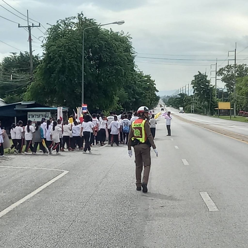ส.ต.ต.กิตติศักดิ์ รุดบุญ ม่วงค่อม614 พร้อมกำลัง ว.4 อำนวยความสะดวกด้านการจราจร – ถนนสุรนารายณ์ (205) บริเวณโรงเรียนบ้านม่วงค่อม