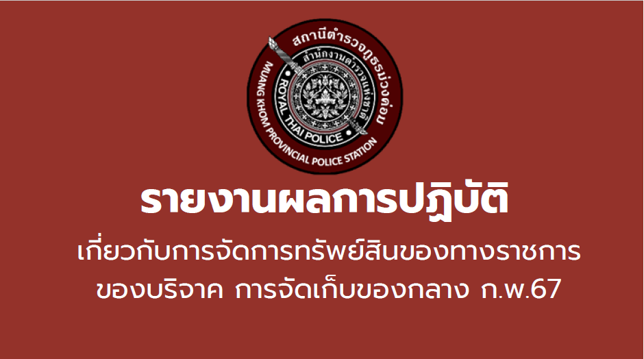รายงานผลการปฏิบัติเกี่ยวกับการจัดการทรัพย์สินของทางราชการ ของบริจาค การจัดเก็บของกลาง (ประจำเดือน)