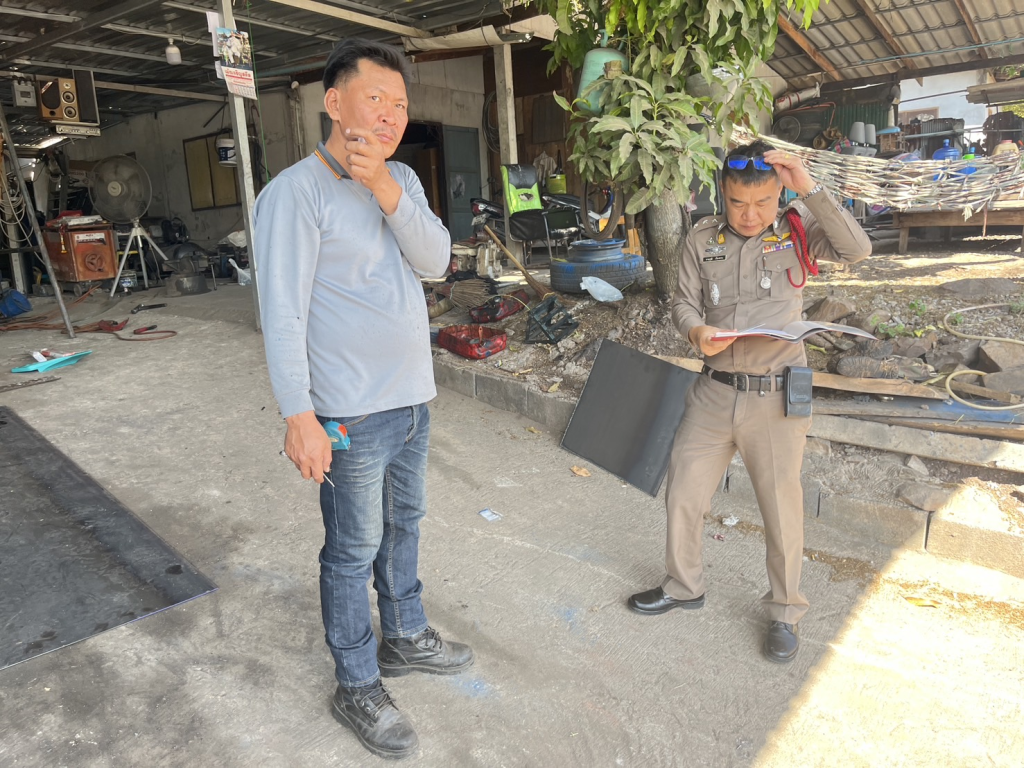 พร้อมกำลัง ว.4 ตรวจที่เกิดเหตุ ทะเลาะวิวาทบริเวณ หน้าร้าน อู่เฮงดี หมู่ 4 ต.เขาเเหลม อ.ชัยบาดาล จ.ลพบุรี