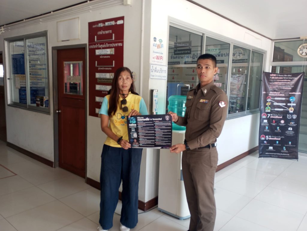 วันนี้ 24 ม.ค.2568 เวลา 15.00 น. ส.ต.ต.ภูวดล นาปัญญา ผบ.หมู่.(ป).สภ.ม่วงค่อม อ.ชัยบาดาล จว.ลพบุรี ได้ประชาสัมพันธ์การป้องกันอาชญากรรมทางเทคโนโลยี และไซเบอร์วัคซีน ให้กับประชาชนที่มาติดต่อราชการ สภ.ม่วงค่อม