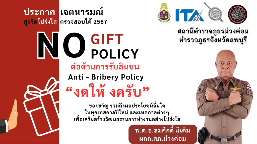วันที่ 27 ธันวาคม 2566 เวลา 09.00 น. พ.ต.อ.สมศักดิ์ นิเต็มผกก.สภ.ม่วงค่อม ประชุมชี้แจง แจ้งประกาศเจตนารมณ์ของหน่วยงาน ในการป้องกันและต่อต้านการทุจริตและประกาศเจตนารมณ์ไม่รับของขวญัและสินบนอื่นใดทุก ชนิดในการปฏิบัติหน้าที่ในหน่วยงาน