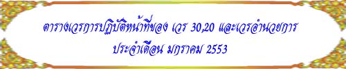 | 2.พ.ต.ท.วินัย | สิงห์อุดร | 1,3,9,15,18,21,24,27,30 | มกราคม 2553 | 2,5,7,10,13,17,20,23,26,29 | มกราคม 2553 |