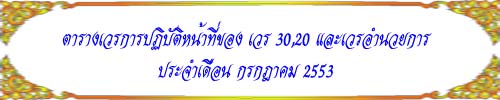 | 1.พ.ต.ท.วินัย | สิงห์อุดร | 2,4,6,8,10,12,14,16,18,20,22,24,26,28,30 | กรกฎาคม 2553 | 1,3,5,7,9,11,13,15,17,19,21,23,25,27,29,31 | กรกฎาคม 2553 |